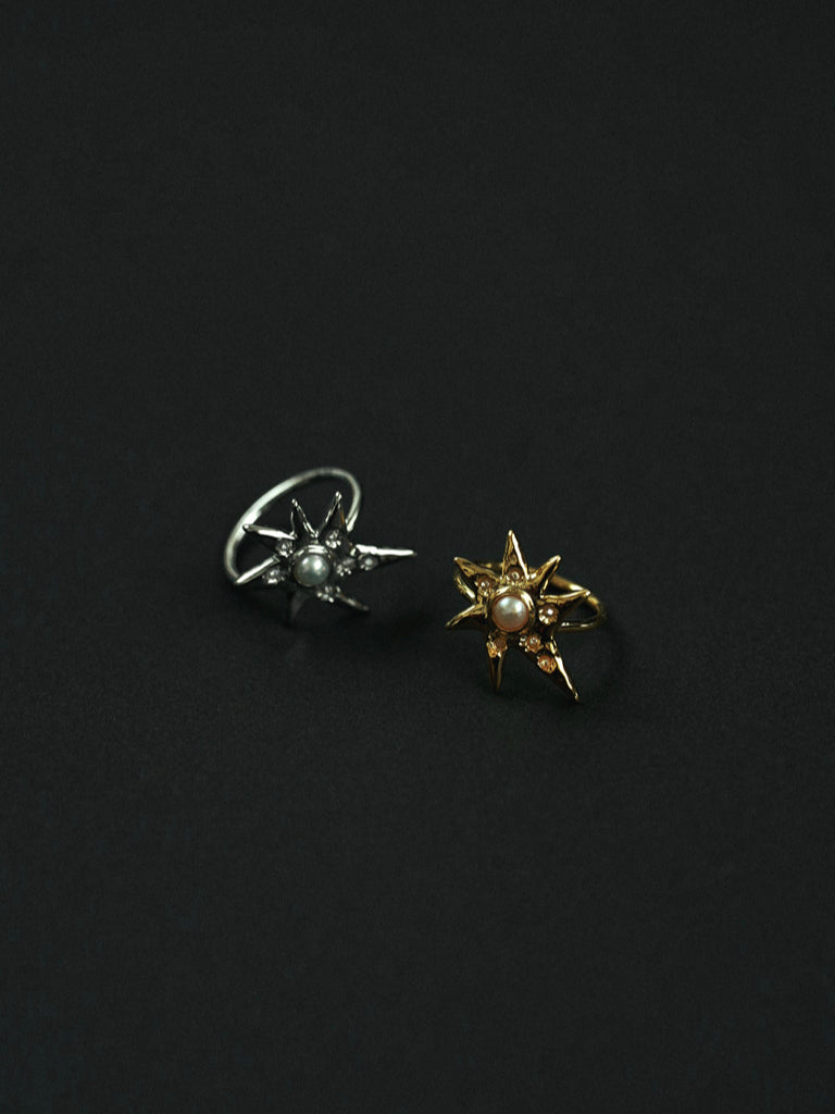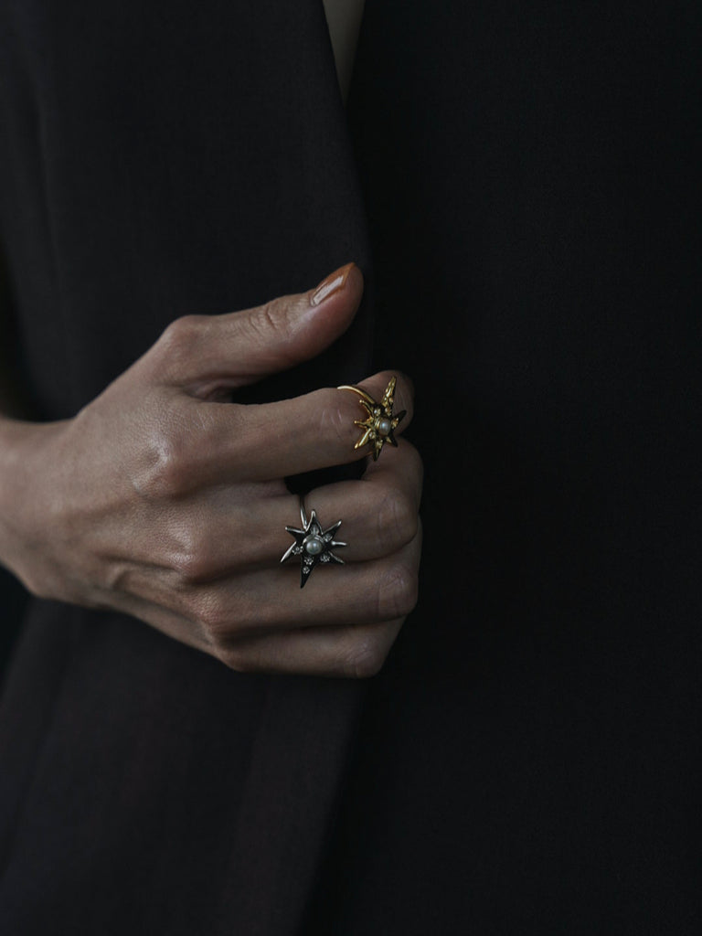 淡水パールとジルコニアを使用した遊びのあるデザインのリングです